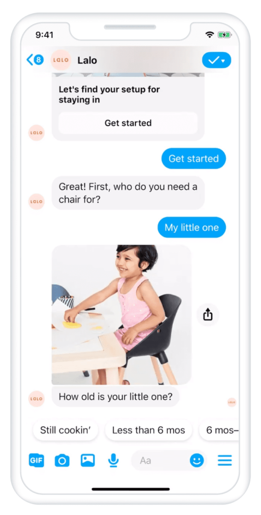 Lalo used Facebook Messenger for business to re-engage website visitors. The brand was retargeting prospects with click-to-Messenger ads, encouraging them to enter the conversation experience in Messenger.