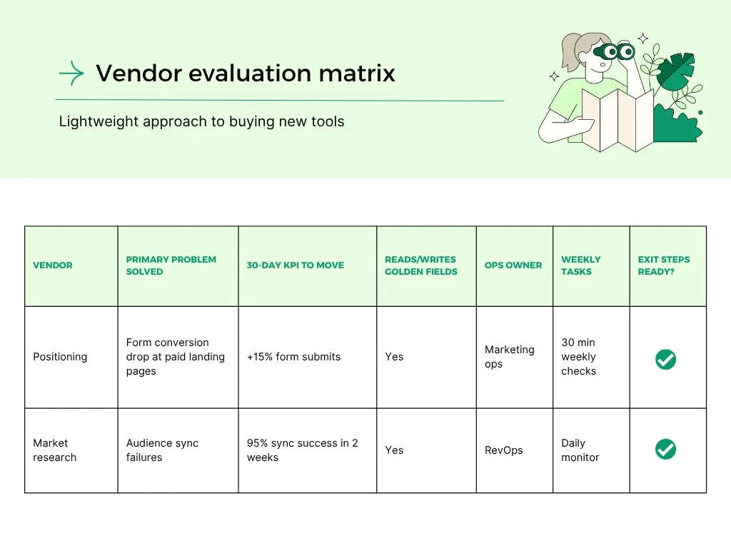 Lightweight vendor evaluation matrix