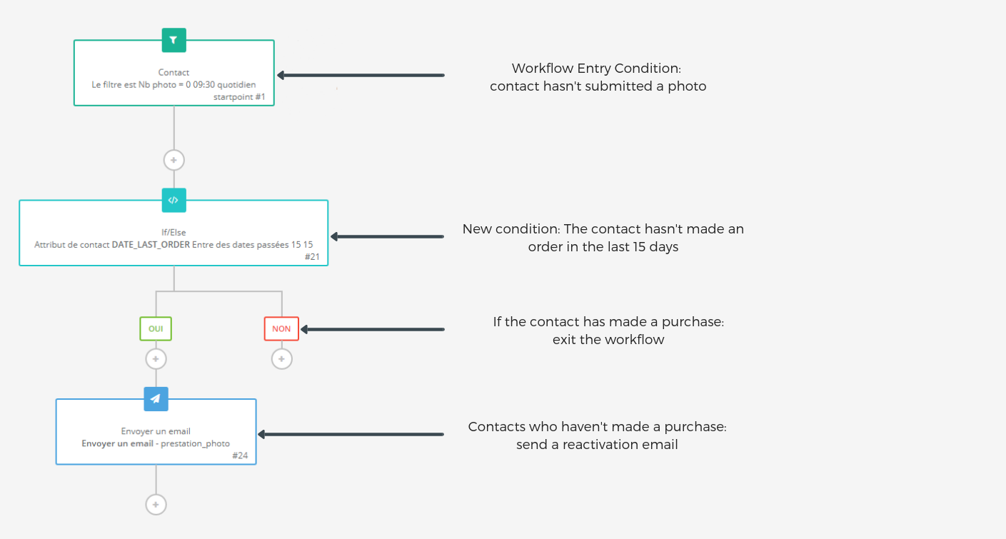 In this scenario, prospects automatically received a follow-up email after 15 days. The email gave them more information about Rhinov and prompted them to send a room photo. This lead nurturing workflow successfully encouraged users to try Rhinov’s services.