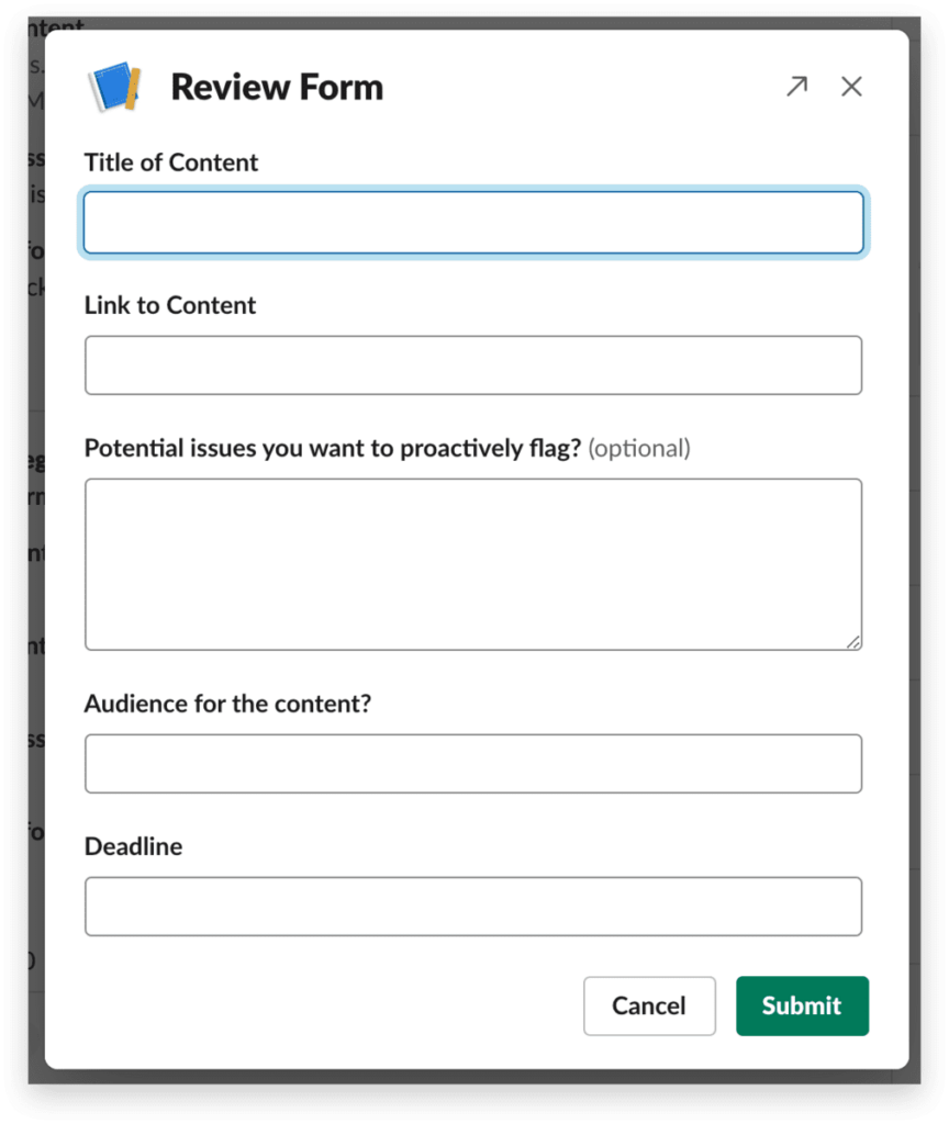 Slack’s Workflow Builder can be a boon for marketing teams. For example, you can set up approval workflows to get stakeholders to sign off on marketing assets. All information is centralized, making it easy to monitor requests.