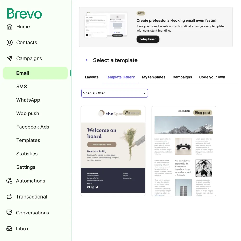 - Brevo offers 24/7 email support and a detailed resource center to assist you all the way through your campaign setup.