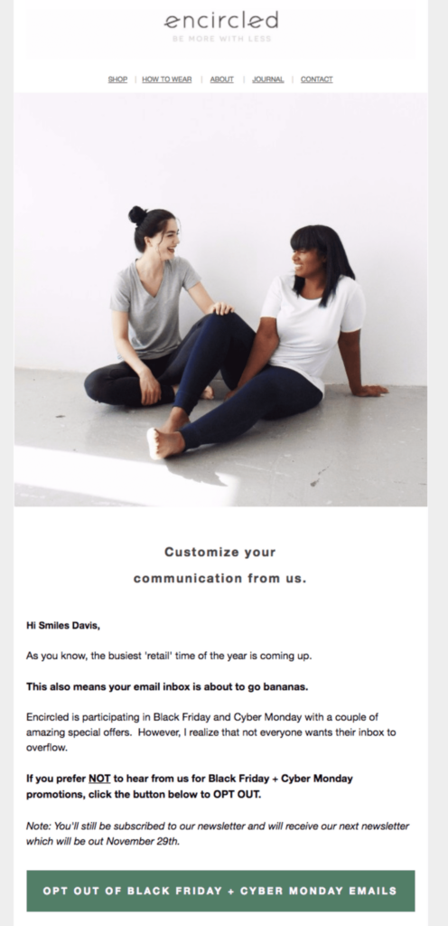 This campaign from Encircled asks subscribers to opt-in to receiving Black Friday emails.