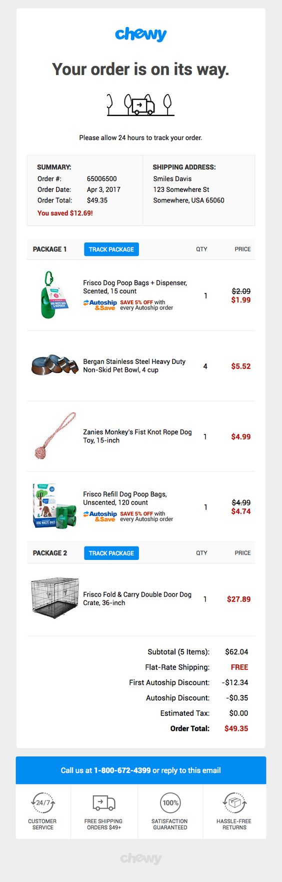 - Multiple helpful links. With options to view the invoice, login, visit the help center, or even read the blog, this email gives the user plenty of ways to move forward based on their needs — whether it’s practical or to learn more about the brand.