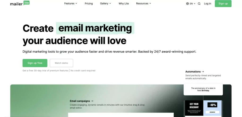 Weitere erwähnenswerte Funktionen von MailerLite: