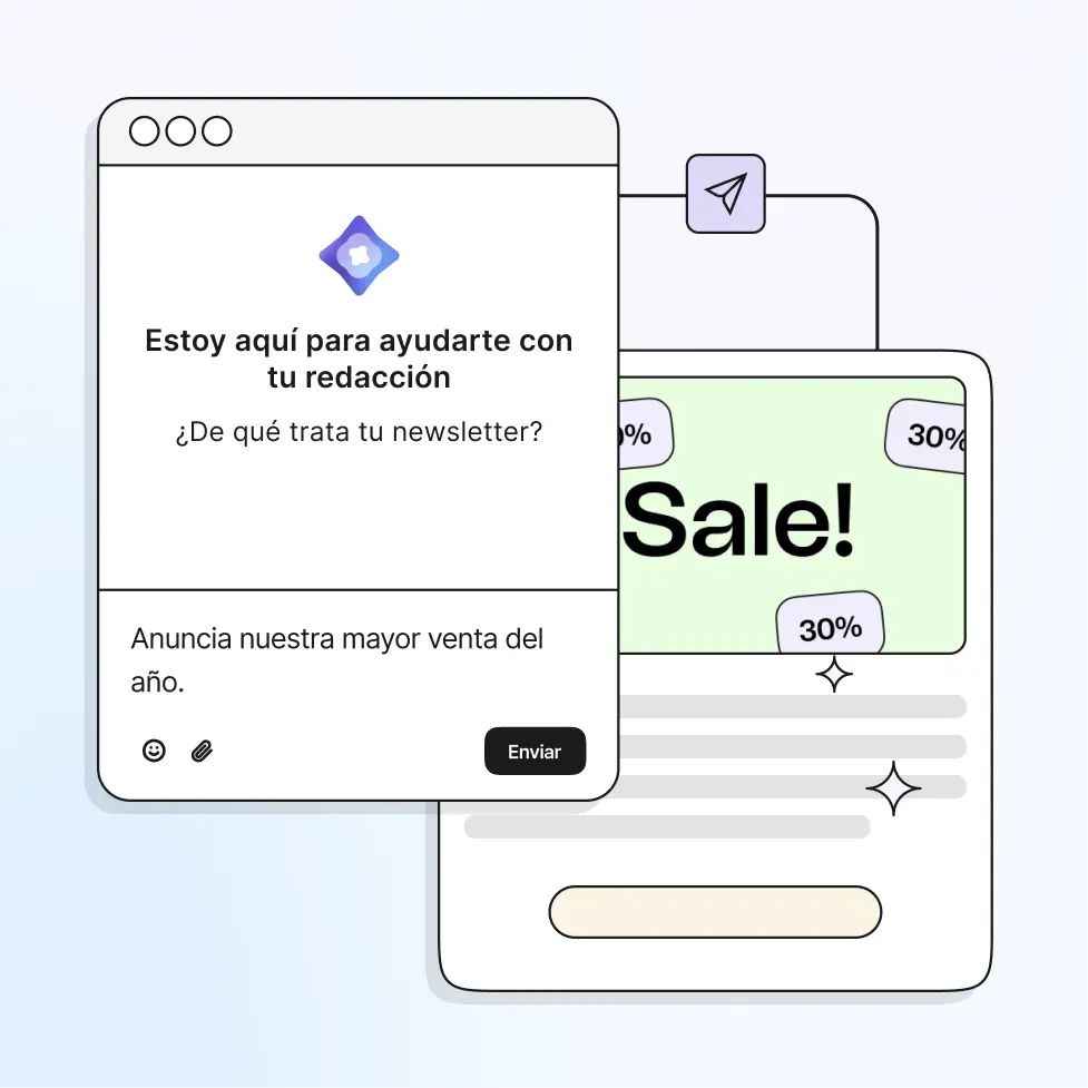 Trabaja más rápido e inteligentemente con Brevo AI. Optimiza campañas con recomendaciones de producto personalizadas, mejor hora de envío e insights claros sobre qué impulsa resultados.
