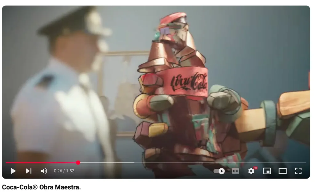Su campaña de marketing más reciente, lanzada en 2023, es «Obra maestra». El mensaje se apoya en el mundo de la cultura y el anuncio transcurre en un museo: una obra de arte pop cobra vida y se transforma en una botella de Coca-Cola. De esta forma, la marca hace referencia a su historia, que abarca más de un siglo. La campaña tiene un continuidad en otros soportes como vallas publicitarias y las propias botellas del refresco, siempre con referencias a obras conocidas del arte contemporáneo.