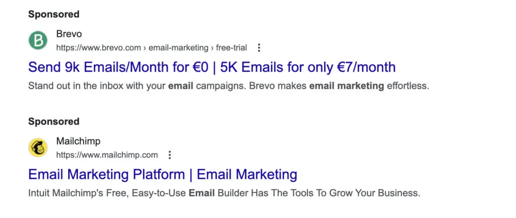 Ejemplo de Google Ads de Brevo y Mailchimp