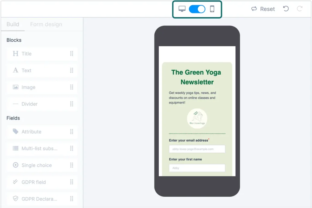 Lo ideal es que tu herramienta de marketing te permita crear fácilmente formularios de diseño adaptativo para mostrarlos en cualquier dispositivo.