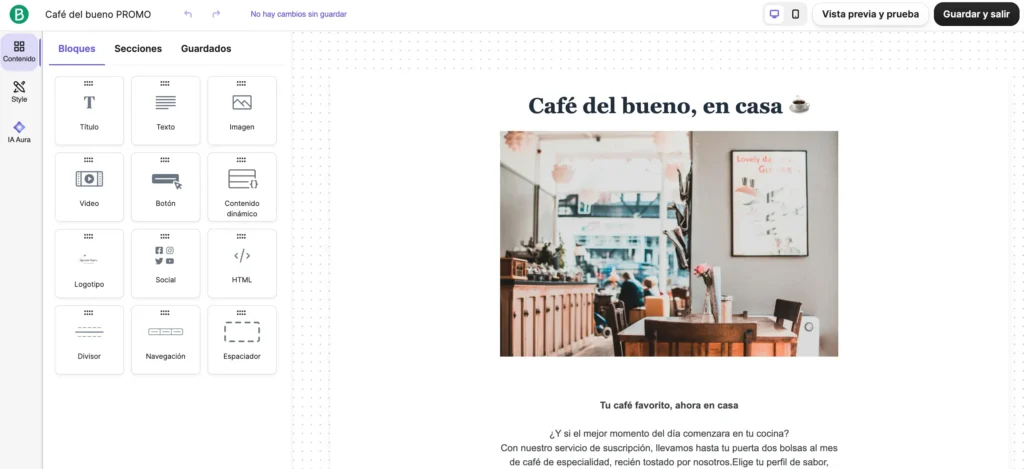 Editor de newsletters de Brevo con plantillas y elementos de arrastrar y soltar