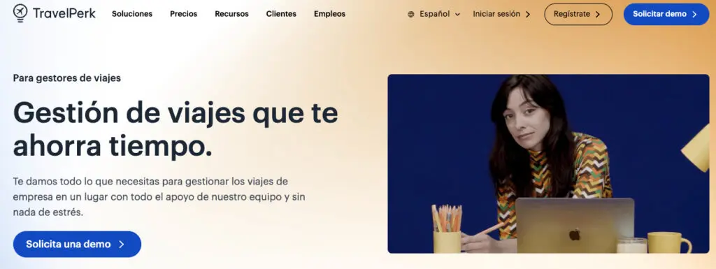 TravelPerk incluye el botón de “Solicitar demo” en sus páginas de producto para mostrar a la persona interesada lo fácil que es reservar viajes corporativos en la plataforma a diferencia de las soluciones de siempre. Cuando el usuario hace clic en el botón, ingresa su email y se le facilita dejar programada la reunión con el experto o la experta que esté disponible.