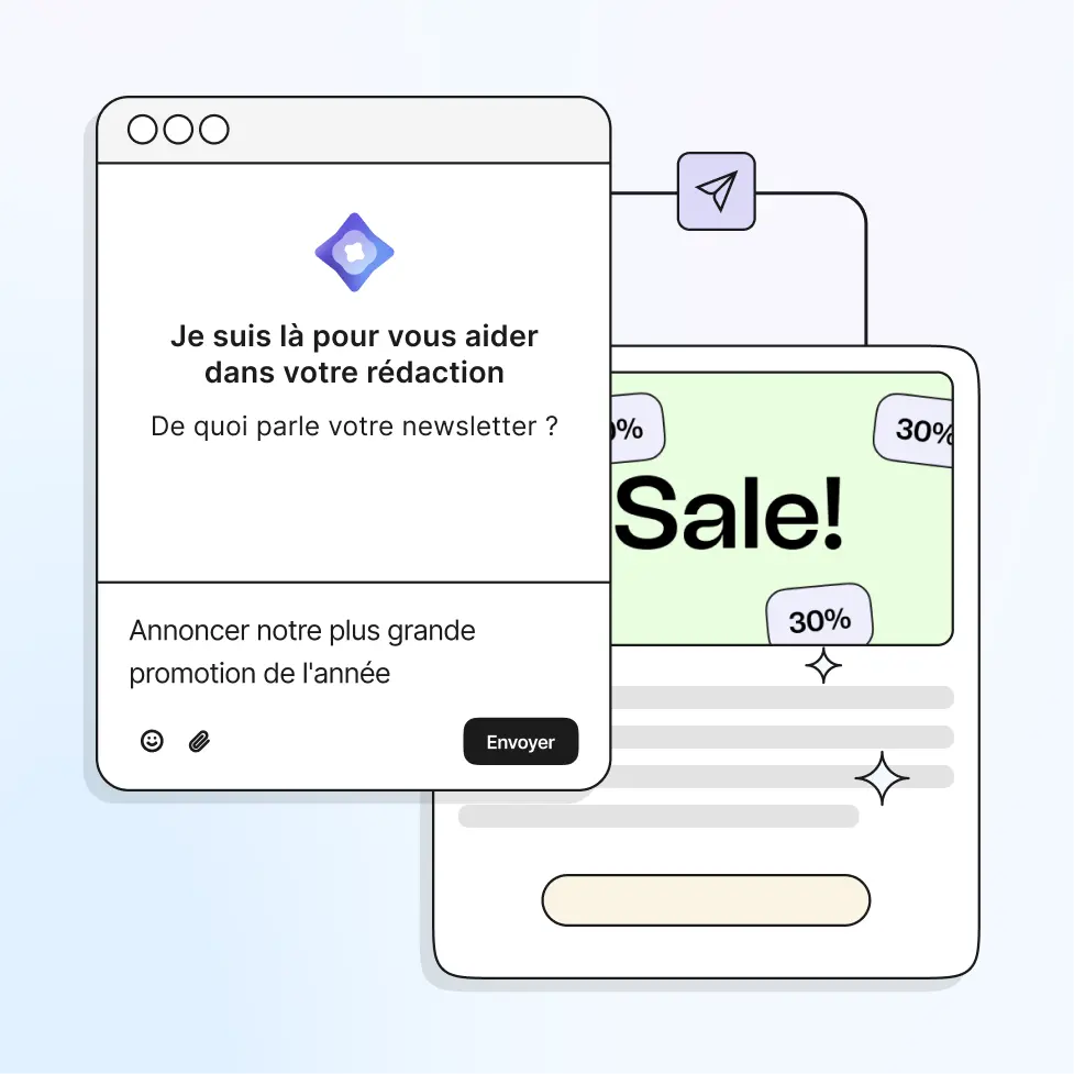 Travaillez vite et mieux avec Brevo AI. Optimisez chaque campagne : recommandations de produits personnalisées, heures d’envoi idéales, insights sur les leviers de performance et plus.