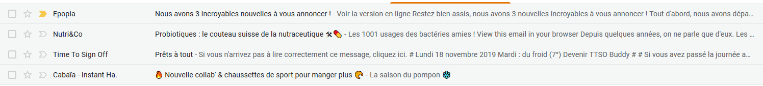 N'oubliez pas non plus de renseigner le Pre-header de votre email. Il s'agit du texte qui s'affiche à côté de l'objet dans certains clients de messagerie. Celui-ci est un très bon moyen de compléter les informations contenus dans votre objet.