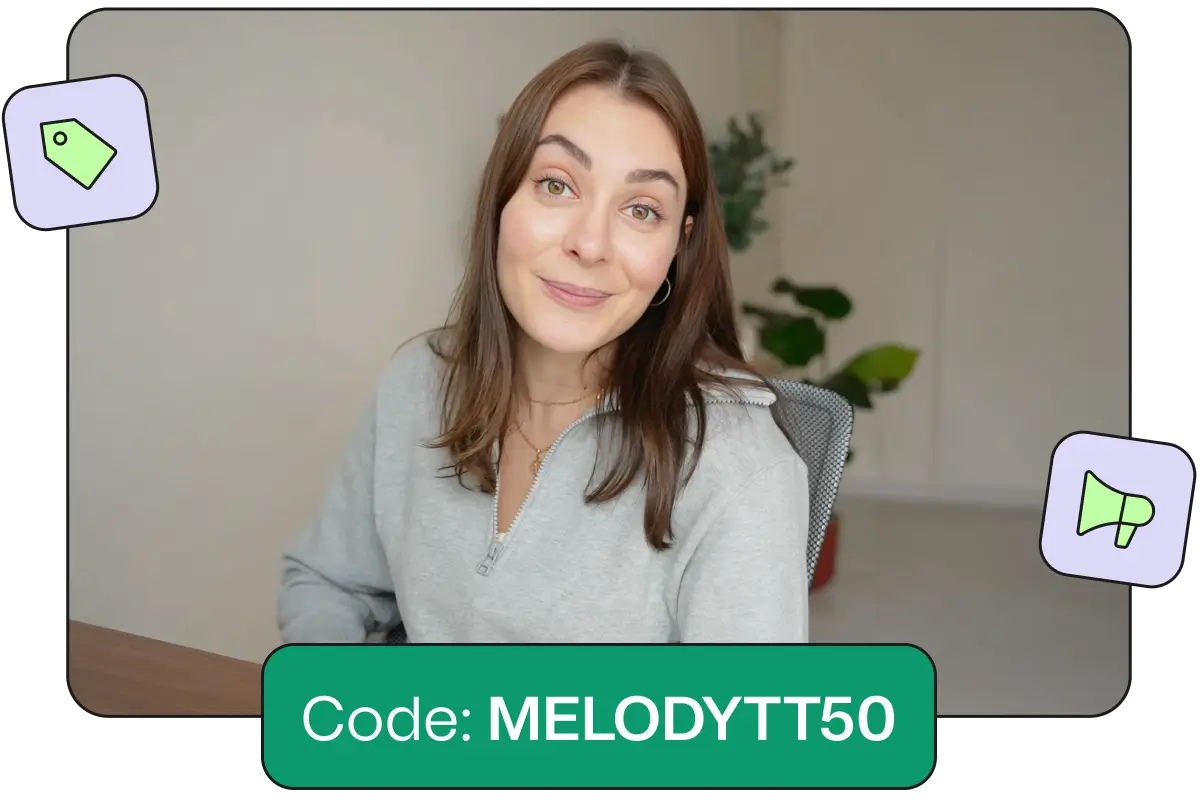 Vous avez entendu parler de nous grâce à Melody et vous êtes prêt pour votre prochaine aventure de marketing digital ? Ne cherchez pas plus loin que Brevo ! Inscrivez-vous dès aujourd'hui et recevez une réduction de 50% pendant 3 mois sur les forfaits marketing annuels en entrant le code promo: MELODYTT50