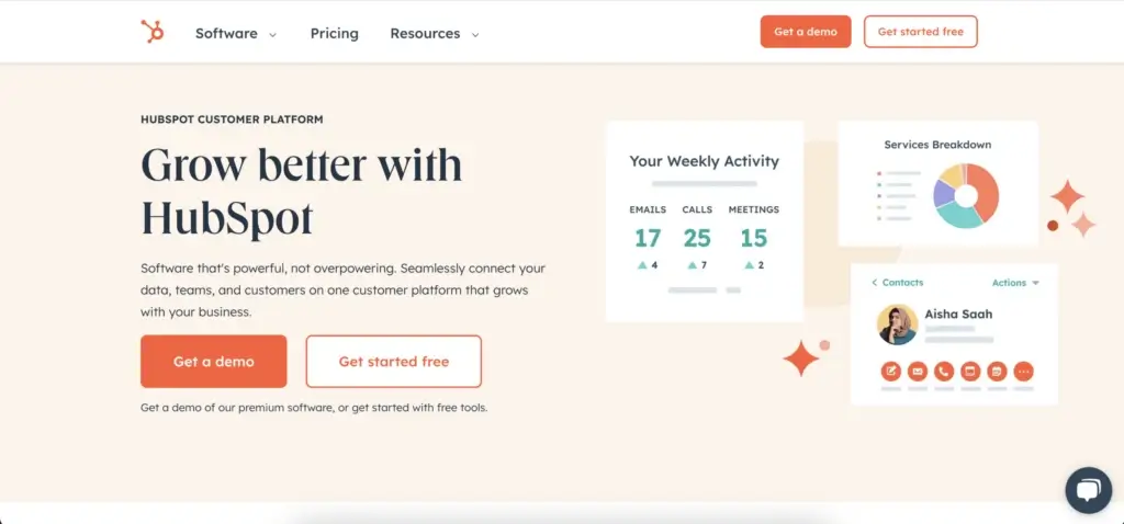Hubspot è una piattaforma nota per le sue funzionalità avanzate. Le funzionalità di email marketing di HubSpot infatti sono divise tra Marketing Hub e Sales Hub. Il Marketing Hub si concentra sugli strumenti per attrarre traffico e generare contatti, come email, pagine di destinazione, annunci sui social media, chat dal vivo, meeting online, SEO e creazione di contenuti.