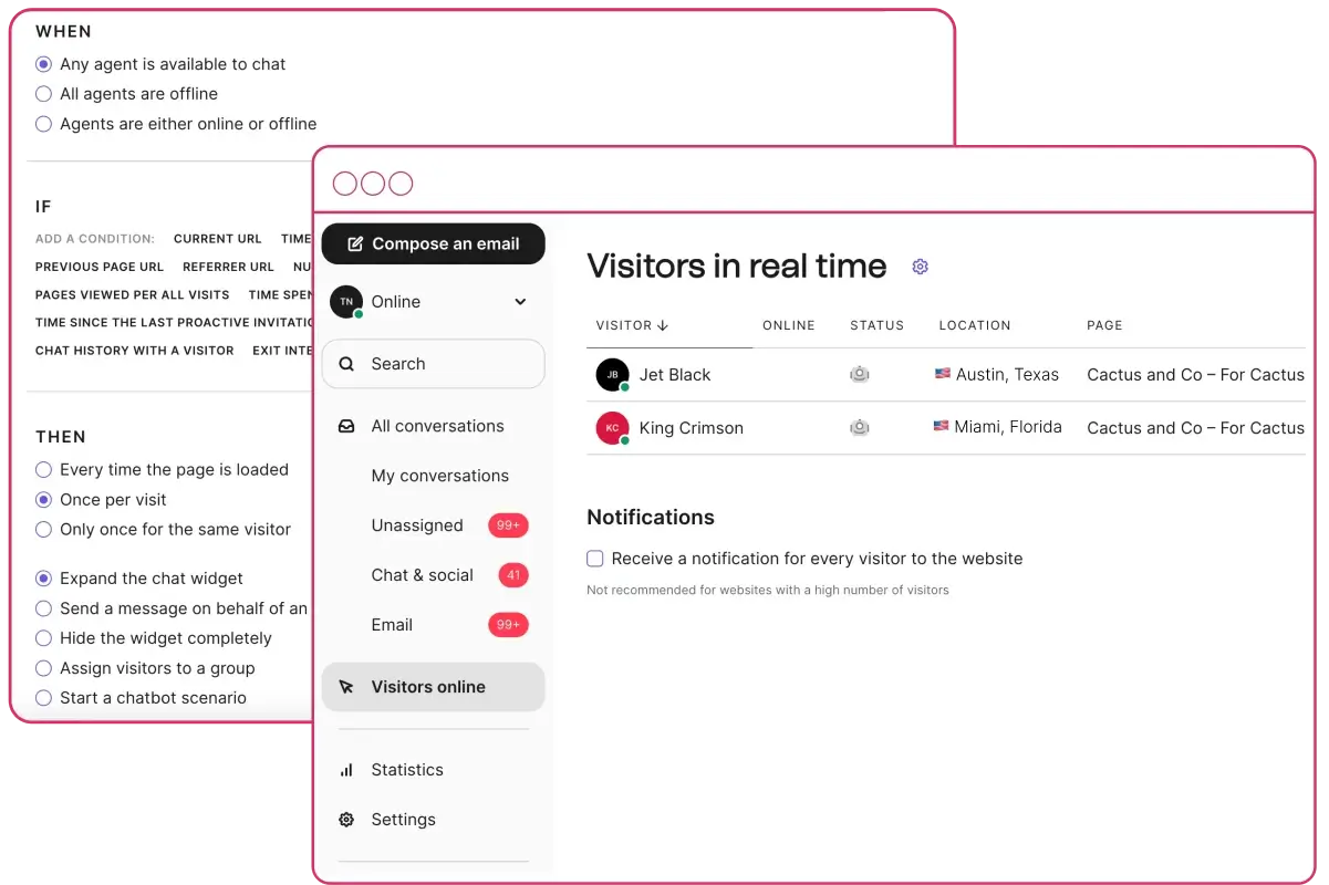 サイトを閲覧中のお客様をリアルタイムで確認し、積極的に会話を始めましょう。