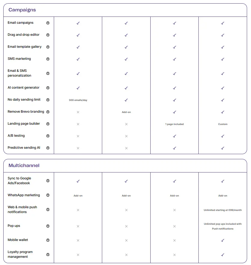 Version applicable until September 30th, 2025. The features applicable to the plans purchased until September 30th, 2025, are displayed under title IV "Plans and features pages". Title IV remains in force after September 2025 for the Users who subscribed to Brevo before October 1, 2025.